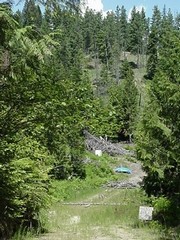 When I made my plans to visit Ran in eastern Washington in July, and to help him with projects on his land, I did not yet understand what the land would be like. Sure, I knew it had been "logged" and there were some things called "slash piles" there, but I'm afraid those words meant nothing to me. In western Pennsylvania, we all know what "mining" means -- oily, poisoned waters and huge piles of dead dirt, mine-waste and rock, sink-holes, smokes, and fires underground that will burn long after the fires of industry are extinguished. It means spindly old men dying of black lung in rotting company-town row houses.
