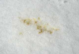 In the photo you can see that they're fine. Two days ago, on the first warmish sunny day, there were a few dozen bees flying around and pooping in the snow, and yesterday they all came out. You can also see that they like the front entrances better than the top entrances that the hive was designed for. I've drilled a total of five holes on the front, and through most of winter I had three of them sealed with wine corks. On the coldest nights I closed them down to one hole -- you never want to completely close it because they need ventilation to get the moisture out. That black thing is tar paper to help them keep warm, but I've removed it now, and as the weather warms I'll keep more entrances open full time. They still have massive honey stores, and should regrow their population with no supplemental feeding and be ready for the first flowers in a month.