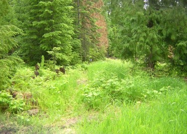 Also, someone on the forums had the idea to accelerate the decay of the wood piles by covering them with leaves. Of course, I don't have any real leaves up there, because all the trees are conifers. But I do have some some dead ferns and dead grass, and I can haul up bags of leaves every fall from Spokane and throw them on the piles, and also throw water on throughout the summer. So, in addition to the three burn piles, I've started two wood composting piles, and if I get enough leaves this fall I'll do a third. At this rate, I should be able to clear away the worst of the slash in four or five years.